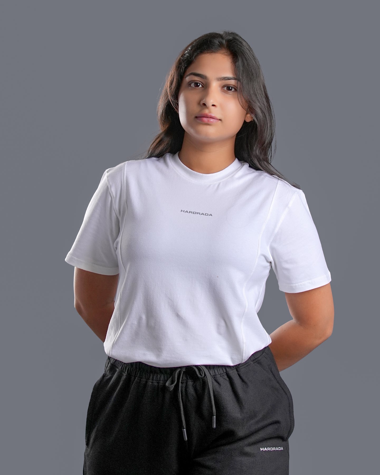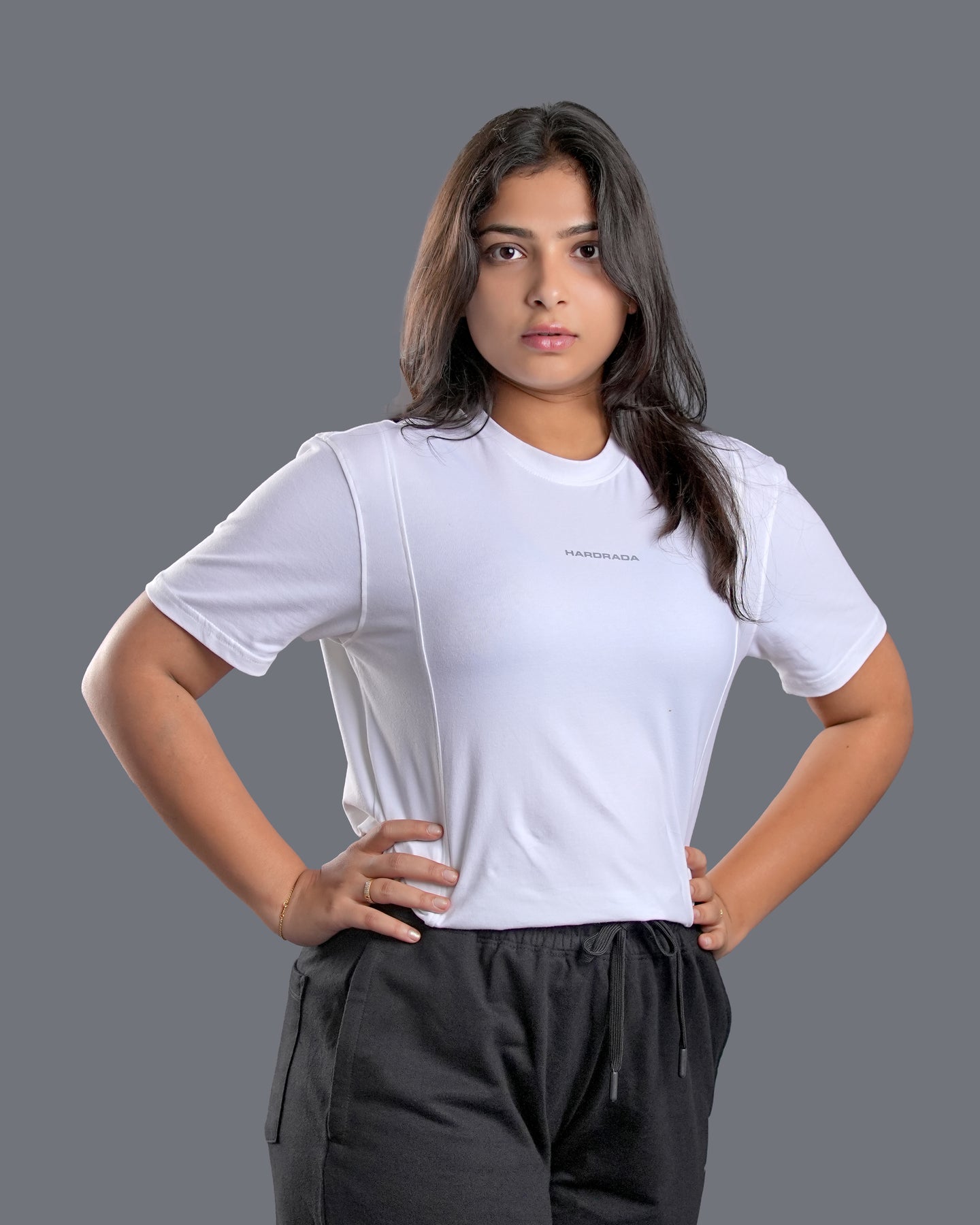 A clean, confident essential crafted for women who move with intent. Ultra-soft fabric, breathable fit, and effortless drape — built to carry you from training sessions to everyday hustle. Minimal look. Maximum strength energy.